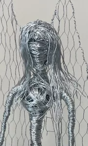 This profound wire sculpture, “Angel,” evokes a sense of ethereal beauty and quiet contemplation.