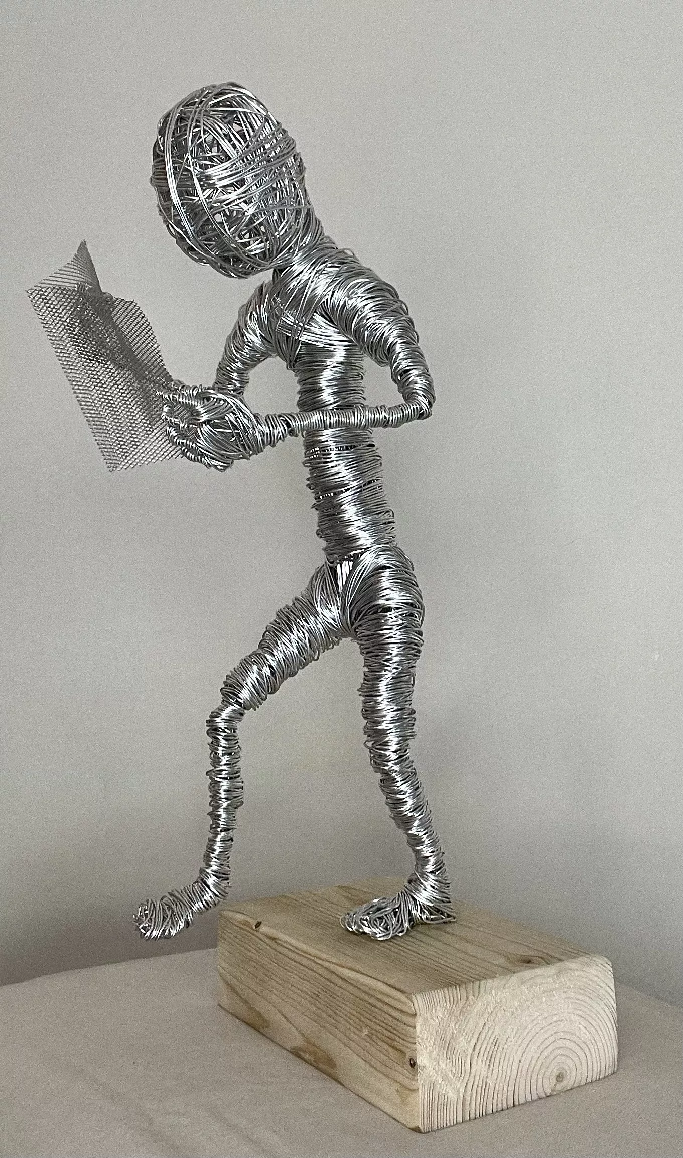 This compelling wire sculpture, aptly titled ‘A bit rusty,’ captures a dynamic moment of athletic grace and raw human effort.