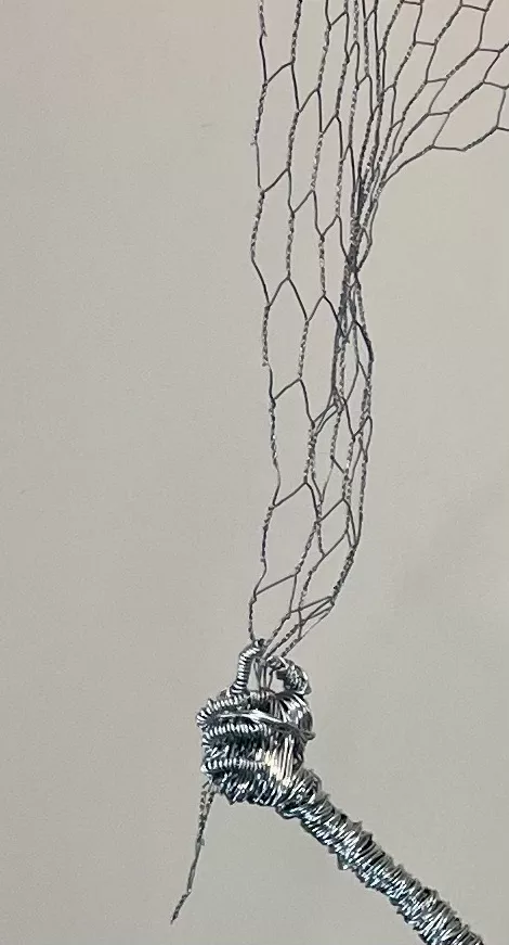 This ethereal wire sculpture, “Kite Flight,” beautifully captures a moment of soaring freedom and delicate balance.