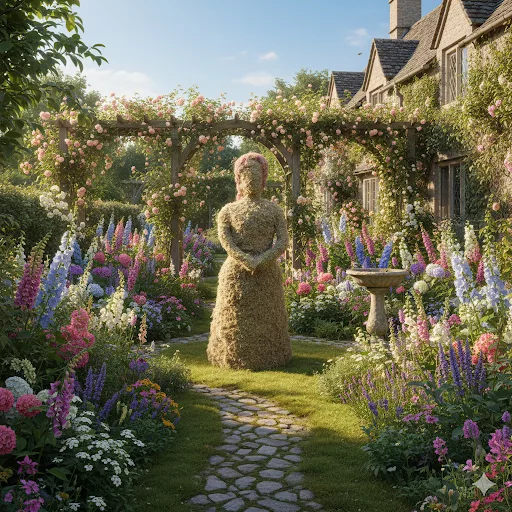 Imagine walking into your garden to find this enchanting sculpture awaiting you! “Little Miss Mossington” is a delicate and perfectly proportioned moss topiary, standing demurely with arms crossed, her figure subtly defined by the soft, warm green texture.